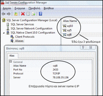 aliases του Sql Server Configuration ( πχ server 1)